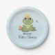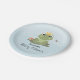 Fügen Sie Ihren Namen den entzückenden blauen, grünen, gelben, orange und grauen Tönen Papierservietten dieser Jungen-Babydusche niedlichen Froschprinzen der themed mit einem niedlichen und kawaii froggie hinzu, das eine Gold farbige Krone trägt, die auf einer Lilienauflage mit einem Pilz Toadstool auf ihm gegen einen blauen Himmel des Polkapunktes sitzt. Eine Libelle fliegt nahe bei ihm. Grafik © Chrissy H. Studios, LLC. Alle Rechte vorbehalten.