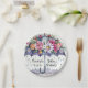Diese zarte Aquarellbild zeigt einen dunkelblauen Regenschirm, der mit lebhaften rosa, roten und gelben Blumen geschmückt ist und sanfte blaue Regentropfen fängt - ein schönes Symbol für die Freude und die Segnungen, die die Eltern bei ihrer Babydusche auf sich ziehen.