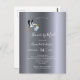 Eine Babydusche per E-Mail/praktisch eine Duscheinladung über große Entfernungen. Ein Imitat silber metallisch aussehender Hintergrund, weiße Buchstaben. Mit einem fliegenden Storch, der einen kleinen Jungen hält. Personalisieren Sie den Namen der Mutter-zu-sein und Ihre Zoom/Skype-Party-Daten und fügen Sie ihn hinzu. Zurück: Normales Postkartendesign