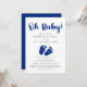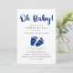 Feiern Sie die moderne Mutter-zu-be-Mutter aus der Ferne mit einer Babydusche per Post. Diese einfache und minimale geschlechtsneutrale Babydusche enthält "Oh Baby". in einem navy blauen Stilschriftstück und einer koordinierenden marineblau blauen Wasserfarbe von Babyfüßen. Sie können einfach mit der Dusche per Post Details, einschließlich Registriernummer, wo zu senden Karten und Geschenke, ob die Mama-to-be Gastgeber einer Live-Streaming-Veranstaltung oder Post-Foto von ihrer Eröffnung der Geschenke, und wo, um mehr Informationen zu erhalten.