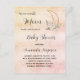 Für eine moderne Babydusche im bohischen Stil. Eine Rose Gold, rot rosa rustikale Imitate metallisch aussehen Hintergrund. Mit einem Mond, Blumen und Eukalyptusgrün dekoriert. Personalisieren und fügen Sie einen Namen und Party-Details hinzu.