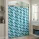 Duschvorhang mit dem Bild von Meeresschildkröten vor einem ozeanfarbenen Hintergrund.