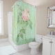 Duschvorhang Grün/Weiß Streifen Rosa Rose