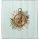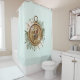 Vorstellung des Duschvorhangs des Aquarells. Mit Aquarellbildern aus einem Bronzekompass, der von einem zarten Kranz mit üppigen Blätter und lebhaften Blume umrahmt wird, ist das Set in einem sanften grünen Hintergrund gehalten. Geeignet für Natur- und Wildtierfreunde.