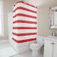 Ein niedliches, modernes und elegantes Badezimmer mit Duschbrause in Rot und Weiß.