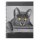 Ein Foto, das direkt in das Gesicht einer grauen Katze mit golden leuchtenden Augen schaut. Hergestellt mit selektiver Färbung zur Betonung der faszinierenden Augen.