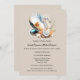 Ein schlichtes, schlichtes und elegantes Design eines Single-Seepferds, das mit einem hellorangen, schwebenden vor einer offenen Muschel umgeben ist, in der sich eine Perle ruht. Die 3D-Grafik ist Set vor einem duskischen lachsfarbenen Hintergrund, der dunkelgraue Kalligraphie-Skript-Vorlagen auf ihm hat, die personalisiert sein können, Ihren Anlass zu Anzug. Muschel und Perle scheinen zu funkeln und zu leuchten und beide haben eine Perlmutt zu ihnen. Die hintere Vorlage sollte gelöscht werden, wenn keine zusätzlichen Informationen für Ihre Gäste erforderlich sind. Diese sind ideal für Strand, Wassersport, unter dem Meer, tropische Hochzeiten in Urlaubsort oder Küstenlandschaften, Vogeltage und besondere Veranstaltungen.