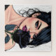 Düster-gotische Frau mit Rose Dunkle Ästhetik Puzzle