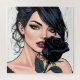 Fügen Sie Ihrem Tisch eine Note dunkler Romantik hinzu, indem Sie Stunden voller Spaß beim Zusammenbau eines Puzzles mit dieser atemberaubenden gotischen Ästhetik haben, die eine hochdetaillierte Illustration einer mysteriösen Schönheit mit durchdringenden Augen und einer einzelnen schwarzen Rose enthält. Dieses Puzzle vereint eine perfekte Mischung aus stimmungsvoller, kinematografischer Kunst und modernem gotischen Stil.