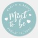 Die Gastgeschenk Hochzeit-Aufkleber aus der Sonne sind in weißem, handgeschriebenem Schriftsatz mit Herz-Akzent "mint to be" auf einem staubigen, aquamarinen Aquahintergrund. Personalisieren Sie mit Ihren Namen und Hochzeitstermin.