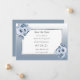 Eine elegante Hochzeitskarte Save the Date. Ein silber-weißes Imitat mit Blume in Aquarellen, Rose in Blautönen. Vorlagen für Ihre Namen, Datum und Ort der Hochzeit. Ein chic dusty blauer Farbverlauf, farbiger Hintergrund auf der Vorderseite, dunkelgrauer Text. Zurück: staubiger blauer Hintergrund.