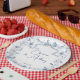 Mit Monogramm Papierschablone, Vintage Retroband Hochzeitsdruckpapier-Teller, personalisierte Hochzeitszettel-Teller, pastellfarbene Hochzeitszeitszettel, Hochzeitszettel-Teller, Blume-Rand-Hochzeitszeitspapier-Teller, Holzschnitzereien, Teller Hochzeitsempfangsdekor