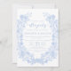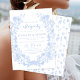 Tauchen Sie ein in die raffinierte Eleganz dieses exquisiten böhmischen Klassikers "Happily ever after", in dem die Blüten der blauen Blume mit ihren anmutigen Linien einen faszinierenden Kranz bilden, der von zarter Spitze inspiriert wird. Ideal, um Ihrem Frühling- oder Sommerfest eine charmante Note zu verleihen, verkörpert diese Einladung zeitlose Eleganz und zarte Schönheit.