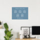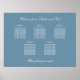 Dusty Blue 5 Table Wedding Chart Poster, bitte personalisieren Sie die Namen des Paares und die Namen der Gäste zusammen mit einem anderen Text, den Sie vielleicht personalisieren möchten. Ein stilvolles Plakat mit elegantem weißem Text auf einem schönen, staubblauen Hintergrund.