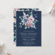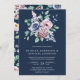 Dusty Blue and Pink Floral QR Code Navy Wedding Einladung