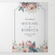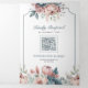 Dusty Blue and Pink Floral QR Code Wedding Dreifach Gefaltete Einladung