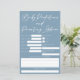 Minimalistische staubblaue Babyduschvorhersagen und Kinderkarte mit schick weißer Typografie. Eine niedliche kleine Karte für Ihre Baby Duschgäste, um ihr Geburtsdatum, ihre Länge, ihr Gewicht, die Haare und die Augenfarbe vorherzusagen, zusammen mit den Ratschlägen der Eltern für Mama und Papa. Welche Eigenschaften hoffst du, dass der neue Junge von Mutter und Vater erben wird? Fahren Sie mit Ihren Worten der Weisheit und den Geburtsstatistiken vorbei.