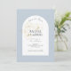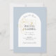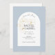 Diese moderne, minimalistisch-blaue Hochzeit bewahrt die Dattelpostkarten mit einem Bohbogen, zarter Nachahmung von goldenen Blumenelementen und einem zeitgenössischen Set von Schriftart in Jetblack. Die Blume wird neben dem optionalen Text auf der Rückseite wiederholt. Dieses Design ist modern und elegant. Ideal für das stilvolle und elegante Paar.