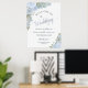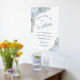 Herzlich willkommen bei Ihrer Hochzeit im Stil mit diesem schönen Plakat aus Folie. Das elegante boho-schicke Design mit handgemalten Aquarellfarben-Rose, Blüten und Gartenblättern in staubigen Blau- und Salbei-Grün-Tönen. Der Text ist in eleganter Schriftzeichen-Kalligrafie mit echten Folienakzenten geschrieben. Es gibt Platz für die Namen des Ehepaares sowie eine kurze Dankeschön-Notiz und das Hochzeitstag/Ort.