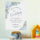 Dusty Blue Boho Floral Elegante Hochzeit Willkomme Foliendrucke