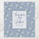 Celebrate love in timeless elegance with this romantic blue floral wine bottle label. Featuring a soft dusty blue background adorned with delicate white blossoms and lush greenery, this design beautifully frames your wedding details with a classic double-border layout. The graceful script font paired with refined serif lettering creates a perfect balance of sophistication and charm.