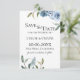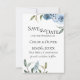 Dusty blauen Aquarellfarben Blume mit botanischem Garten, Hochzeit Speichern Sie die Date Card.