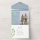 Diese elegante, staubige, blaue Hochzeitseinladung verbindet bohenhaften botanischen Charme mit modernem Minimalismus. Mit seiner sanften Aquarellengrün und den gedämpften blauen Farbtönen ist es perfekt für Gartenhochzeiten, Feiern im Freien oder für minimalistische Feiern. Das faltbare Format enthält integrierte UAWG, die den Komfort erhöhen. Verbinden Sie es mit passenden Stücken aus unserer staubblauen botanischen Kollektion und schaffen Sie eine zusammenhängende und anspruchsvolle Hochzeitssuite. Wichtig: Diese All-in-One-Einladung erfordert einen separaten Umschlag für das Mailen.