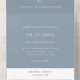Elegant dusty blau botanische Aquarellblumen und botanisches Blattwerk, alles in einer Hochzeitseinladung in staubblauer Farbe. Template bietet Platz, um jede Einladung mit Ihrem Gastnamen und Ihrer Adresse zu personalisieren.