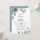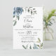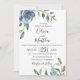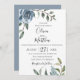 Aquarellfarbene Blume in schick staubblauem Blau mit botanischen Ästen, Hochzeitseinladung. Anpassen von Text, Schriftart, Farbe und Größe.
