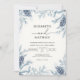 Ein ruhiges Winterdesign entfaltet sich mit zarten, staubblauen botanischen Elementen, die die Grenze umrahmen. Pinecones und mattiertes Laub rufen eine ruhige, natürliche Ästhetik hervor. Dieses Design bietet eine raffinierte und elegante Atmosphäre für eine Ansammlung im Winter.