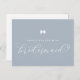 Frag Familie und Freunde, an deiner Hochzeit mit dieser personalisierten "Werden Sie meine Brautjungfrau"-Karte teilzunehmen. Es verfügt über einen niedlichen Bogen, ein skurriles Skript und einen staubblauen Hintergrund. Personalisieren Sie diese, indem Sie einen Namen und eine Nachricht hinzufügen.