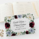 Dusty Blue Burgundy Cranberry Ivory Hochzeit im Herbst Gästebuch - verfügt über einen eleganten Eukalyptus und einen grünen Kranz, der mit Elfenbein/Weiß, staubigen Blau/Tonschiefer/Stahl und bordeauxroten/Cranberry-Blume dekoriert ist. Sehen Sie sich die passende Auflistung auf dieser Seite an, um koordinierende Produkte zu finden, um das Thema zu vervollständigen.