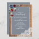 Dusty Blue Burgundy Wood Lace Script Wedding Einladung