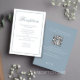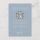 Mit dieser eleganten Empfang-Karte, die mit einem staubblauen Motiv und einer stilvollen, raffinierten Farbpalette besticht, vermitteln Sie einen bleibenden Eindruck. Diese Karte wurde mit stilvollen Kalligrafien und klassischer formaler Typografie gestaltet und vereint Eleganz und moderne Funktionalität. Es beinhaltet einen QR-Code für Hochzeitsdetails, führt die Gäste zu Ihrer Hochzeitswebsite UAWG und moderne Antwort Online Optionen. Teilen Sie einfache Gästezimmer und alle wesentlichen Informationen im Web in einem nahtlosen, raffinierten Design.