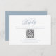 Mit dieser eleganten Hochzeitskarte im minimalistisch-staubblauen Design stärken Sie Ihre Hochzeitseinladungen. Mit klassischer Kalligraphie und traditioneller Typografie strahlt es traditionelle Eleganz und zeitlosen Charme aus. Die QR-Code-Vorlage bietet eine moderne und bequeme Möglichkeit für Gäste zu antworten, gepaart mit der höflichen freundlichen Antwort-Formulierung. Diese stilvolle Gästekarte ist eine perfekte Ergänzung zu Ihrem eleganten, formalen Design und verbindet sich wunderbar mit Ihrer passenden Schreibtischsuite.