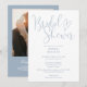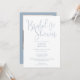 Diese dustig-blaue, elegante Schrift-Brautdusche-Einladung kann mit all Ihren speziellen Event-Informationen und Foto- und Registrierungscode auf der Rückseite personalisiert werden. Entwickelt von Thisisnotme©