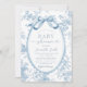 Elegant Vintage Floral Toile Frame Dusty Blue Bow Baby Shower Invitation