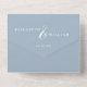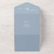 Diese staubige blaue Chinoiserie Blumengarten Hochzeit All-in-One Einladung kann mit dem QR-Code Ihrer Hochzeitswebsite und Ihren Informationen in der modernen Typografie personalisiert werden. Entwickelt von Thisisnotme©