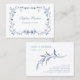 Diese hübschen, staubblauen und weißen Visitenkarten verfügen über einen Vintagen blauen Blumenrahmen mit botanischen Blätter und Blume sowie über eine stilvolle Kalligraphie und einen klassischen Text. Der Rahmen umgibt Ihre Kontaktinformationen auf einem einfachen, weißen Hintergrund. Diese Karte eignet sich besonders für Hochzeitskoordinatoren oder Bridal-Berater, antike oder Vintage Verkäufer und Liebhaber aller Dinge, mädchenhaft und romantisch.