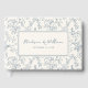 The cover showcases a stunning dusty blue chinoiserie floral line art pattern, intricately designed with delicate blossoms and graceful foliage. This design draws inspiration from classic chinoiserie art, adding a touch of sophistication and vintage allure to your wedding decor.