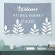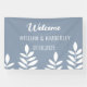 Modernes, elegantes, staubblaues Hochzeitsbanner. Ideal für frische Weds. Man kann es mit Namen und Datum von Braut und Bräutigam personalisieren.