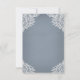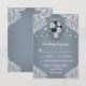 Dusty Blue Country Mason Jar Wedding RSVP Cards - mit einem staubblauen oder slate/steel blauen Hintergrund mit weißer bedruckter Spitze, Saitenleuchten und einem Maurerkrug mit Blumenelementen, Grünpflanzen und mehr. Sehen Sie sich die passende Auflistung auf dieser Seite an, um koordinierende Elemente zu finden.