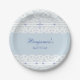 Personalize this Christian baptism paper plate for a truly special celebration. This design features a cross in elegant soft blue pearl graphics and delicate white lace and pearl details against a dusty blue background, creating a charming vintage look. Perfect for minimalist christenings, simple baby dedications, or intimate gatherings, the combination of typography and script font adds a refined, timeless touch. These paper plates are ideal for creating a beautiful, coordinated table setting that celebrates faith with style. Be sure to see the collection for matching items to complete your coordinated look.