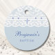 Personalize these Christian baptism favor tags for a truly meaningful touch to your special, faith-filled day. This design features a cross in elegant soft blue pearl graphics and delicate white lace and pearl details against a dusty blue background, creating a minimalist yet vintage look. Perfect for christening, simple baby dedication, or any sacred celebration, the tags combine classic typography and graceful script fonts for a timeless feel. Ideal for favors and as a way to say “thank you” to your guests. See the collection for matching items to complete your coordinated celebration.