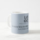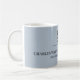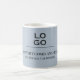 Diese individuelle Kaffeemaschine-Tasse verfügt über ein Muster-Logo oben, das Sie durch Ihr eigenes Firmenlogo ersetzen können. Unter dem Logo ist der Unternehmens- oder Firmenname, gefolgt von der Position. Der Hintergrund ist ein blass staubiges Blau. Es ist ein großartiges Geschenk für Kunden und Mitarbeiter.