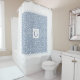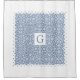 Weiße und staubblaue Damastmuster mit Monogramm und weißen, geschmolzenen Rändern Duschvorhang. Es gibt weiße Bänder mit geschmolzenen Kanten, während in der Mitte Ihr Monogramm in einem weißen Rahmen steht. Sie können es mit Ihrem Namen personalisieren.