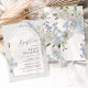 Dusty Blue Delphinium Floral Arched Boy Baptisse Einladung