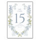 Guide guests to their seats in timeless style with this elegant blue floral wreath table number. Featuring soft watercolor blooms arranged in a delicate botanical frame, this design combines classic romance with modern refinement. The graceful wreath surrounds your table number beautifully, creating a balanced and sophisticated focal point for your reception décor.