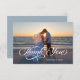 Dusty Blue Elegante Lettering Wedding Foto Dankeskarte