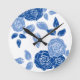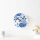 Dusty Blue Elegante White Gray Floral Einfach Runde Wanduhr